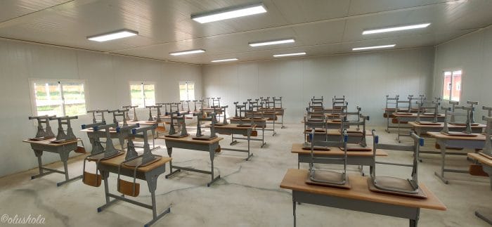 Le lendemain, je fais escale au collège de Kaniasso. Il est construit avec du préfabriqué et vous donnera sûrement envie de retourner sur les bancs faire des maths … ou pas 😅😅.